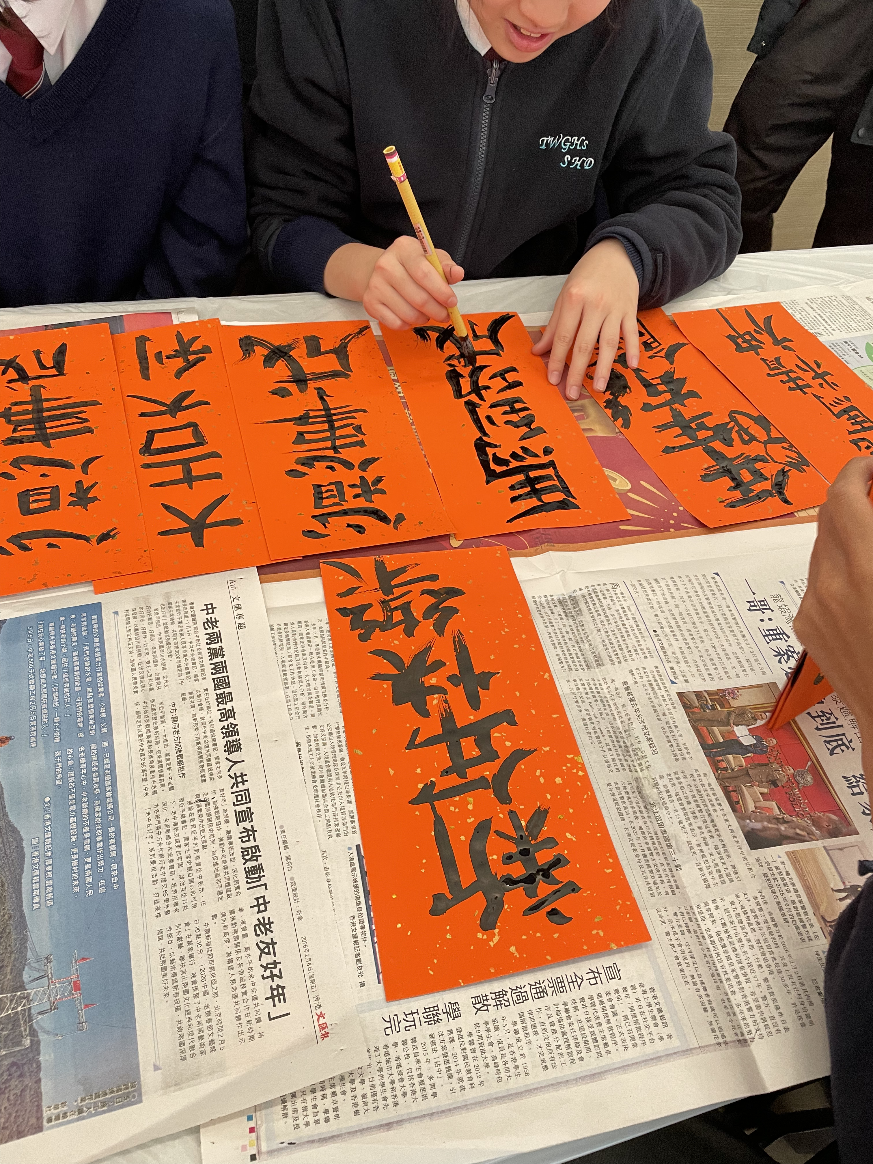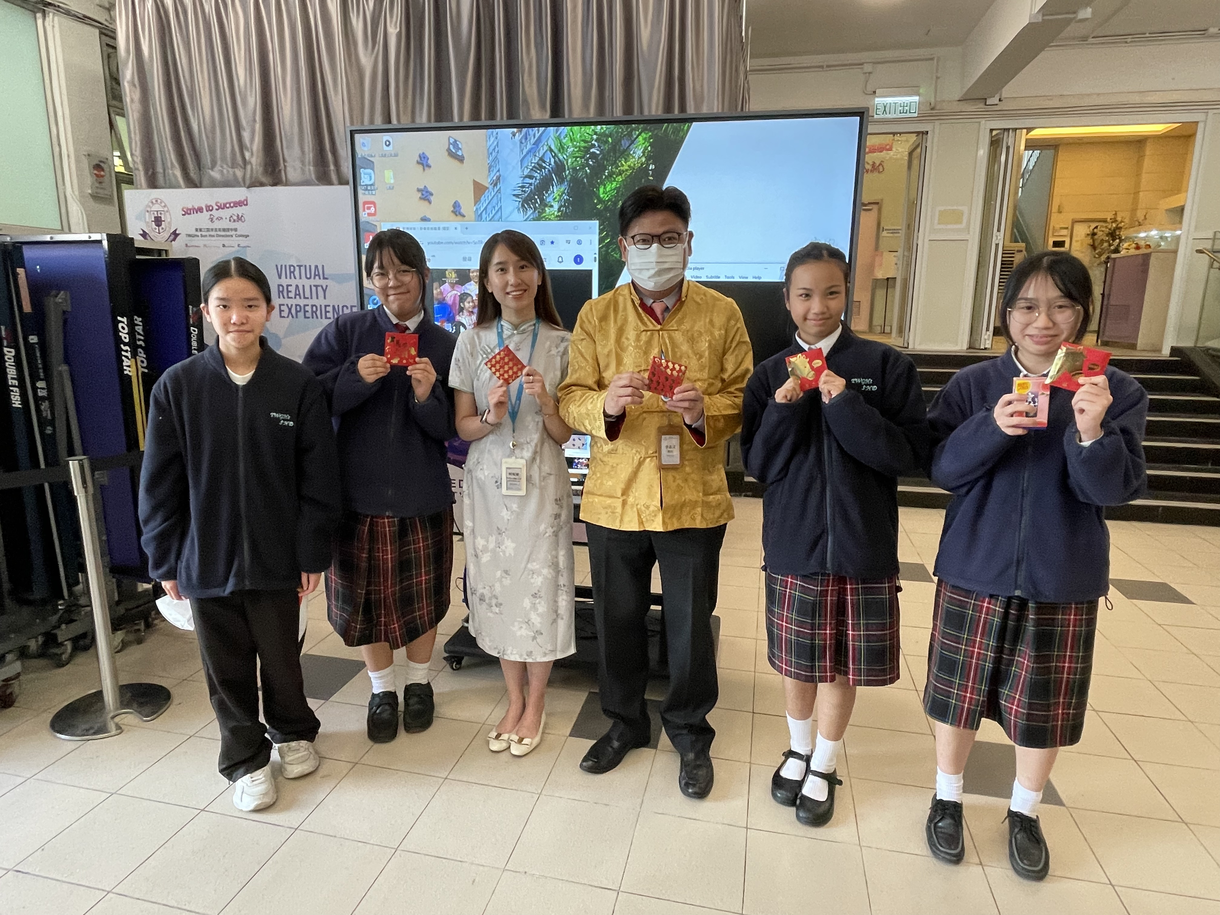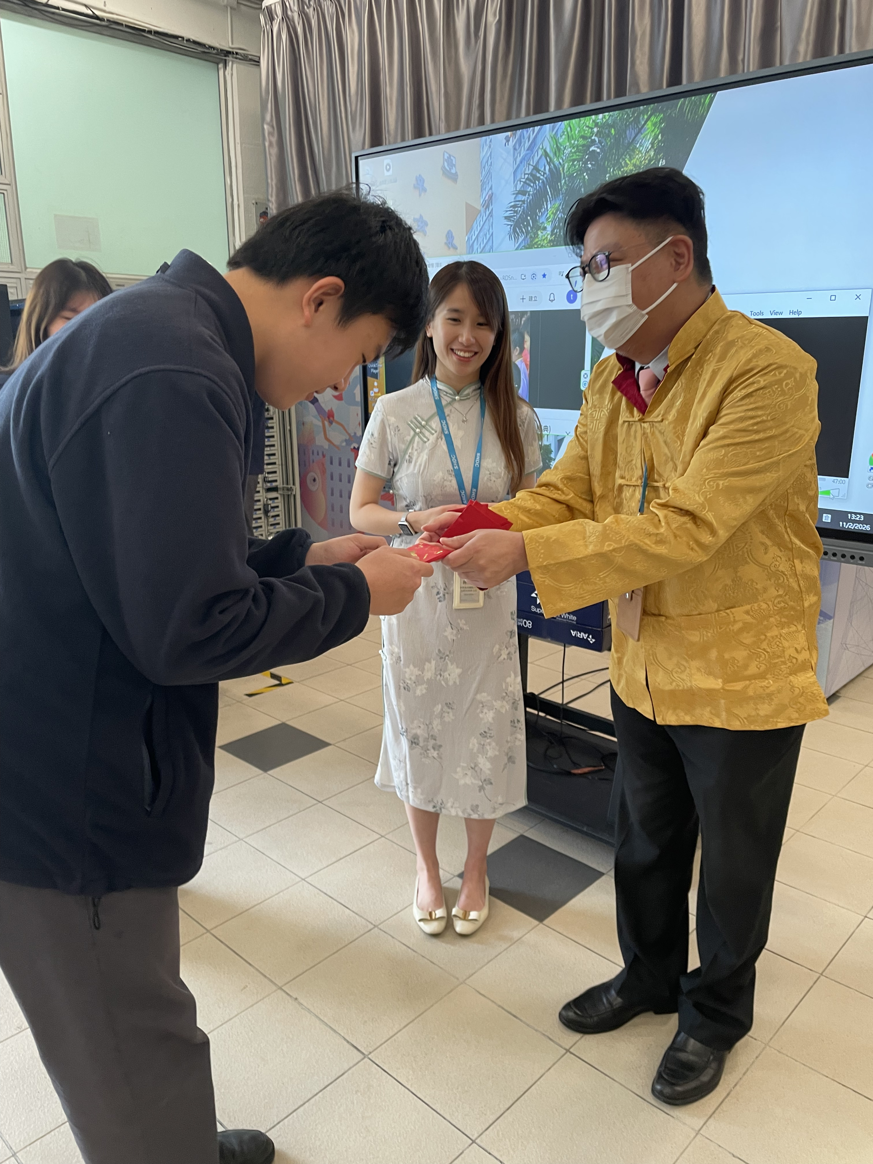 Each day featured different cultural activities, including Putonghua Day, Chinese Cultural Experience Day, tea appreciation, tasting traditional festive snacks, and writing Spring Fai Chun. Among all the events, the most popular was “New Year Greetings to the Principal,” where students offered their festive wishes in advance. The Principal responded warmly with red packets, encouraging students to strive for excellence, filled with love and care.
